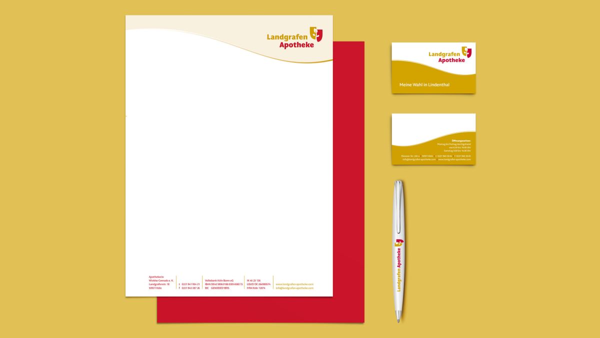 Um den Neuanfang auch nach außen darzustellen, wurde das Logo der Landgrafen-Apotheke überarbeitet und moderner gestaltet. Parallel wurden mit dem neuen Slogan „Aus Tradition für Ihre Gesundheit“ die traditionellen Werte in den Vordergrund gestellt. Zum Übergang gab es einen Flyer, in dem sich die neuen Inhaber vorstellen und gleichzeitig aktuelle Angebote beworben werden konnten. Der Schwerpunkt der Apotheke, die Kompetenz im Bereich hochwertige Kosmetik, wurde in der Positionierung stärker in den Vordergrund gestellt.