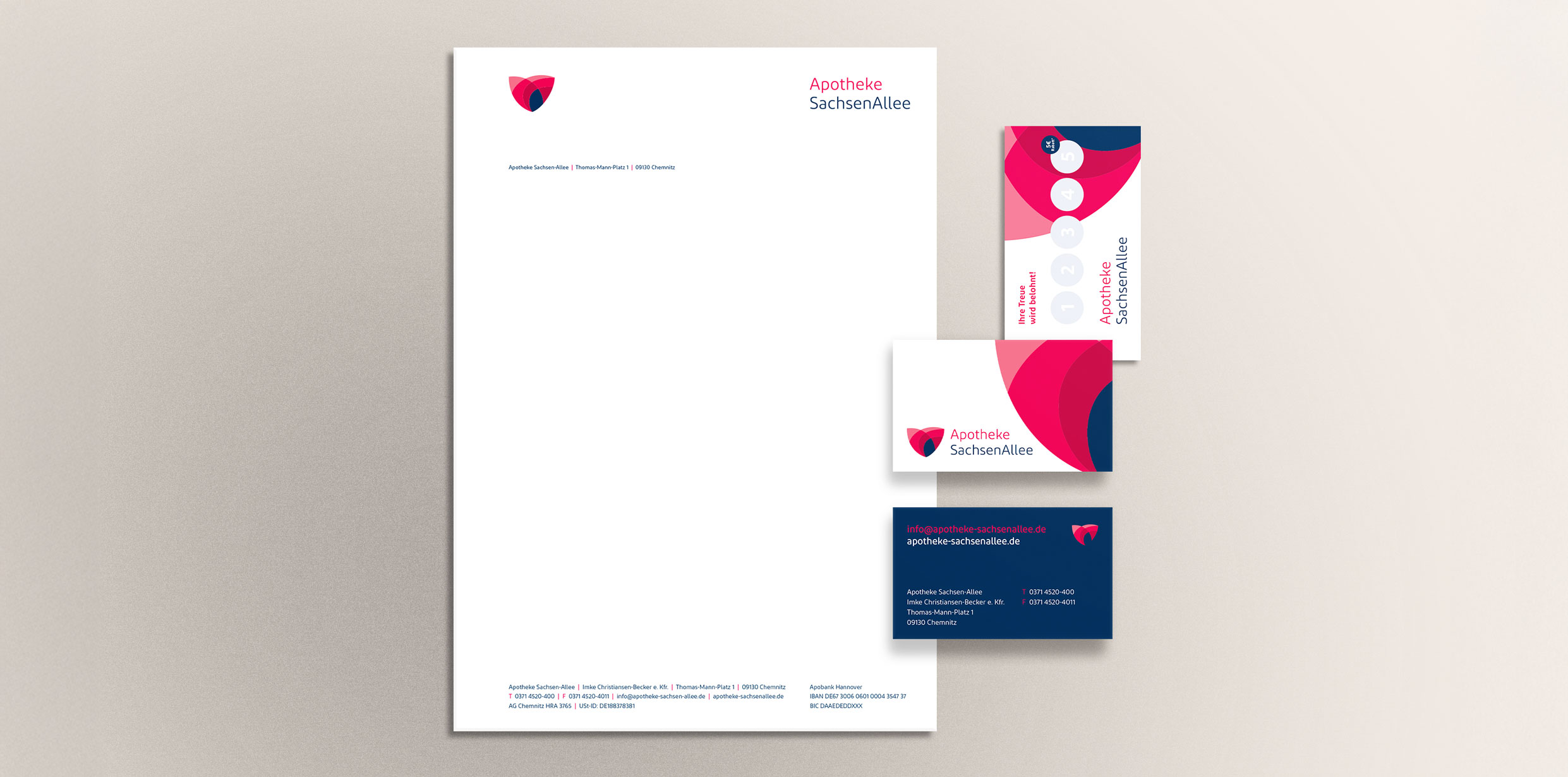 Die Apotheke Sachsen-Allee präsentiert sich heute mit einem klaren, wiedererkennbaren Profil. Das Herz-Logo schafft eine starke Identität, die Kommunikation über verschiedene Kanäle stärkt die Bindung zu Kundinnen und Kunden und erweitert gleichzeitig die Reichweite. Mit dem neuen Auftritt zeigt die Apotheke, dass sie weit mehr ist als eine Center-Apotheke – sie ist ein kompetenter und verlässlicher Partner für Gesundheit, Beratung und Wohlbefinden in ganz Chemnitz.